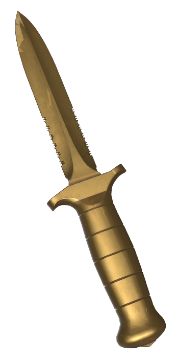 Данным ножом необходимо первым убить противника (если есть другие игроки с 16-ым уровнем), чтобы выиграть. После убийства матч заканчивается и начинается новый. Нож имеет такой же дизайн (2 стиля), как у стандартного ножа (делится по командам), но лишь с золотой текстурой.
