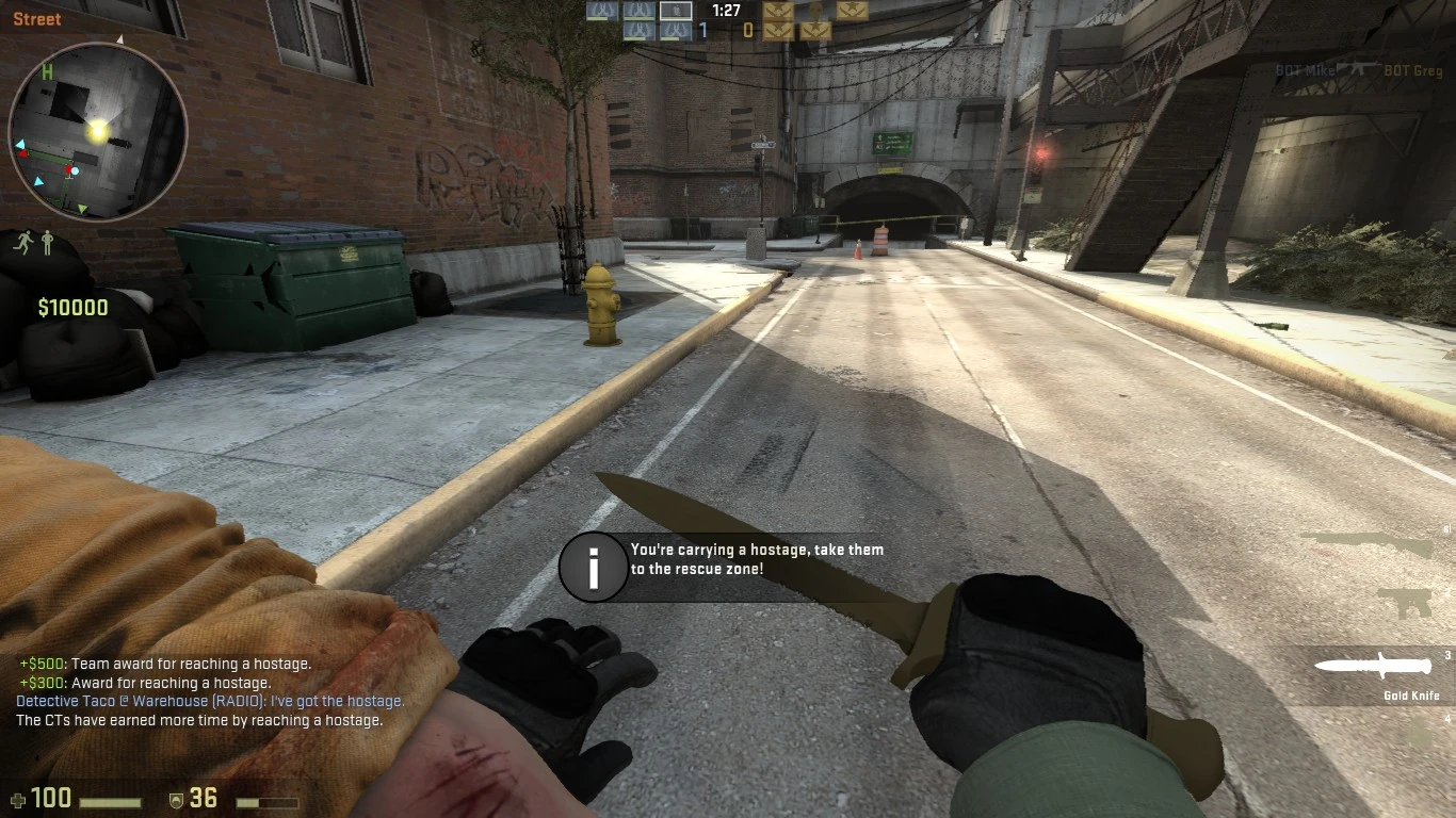 - Наряду с гранатами, Zeus x27 и C4, золотой нож является одним из немногих вооружений в игре, которых невозможно осмотреть (F по умолчанию). Скорее всего это вызвано тем, что для данных вооружений нет раскрасок оружия, в отличие от других.