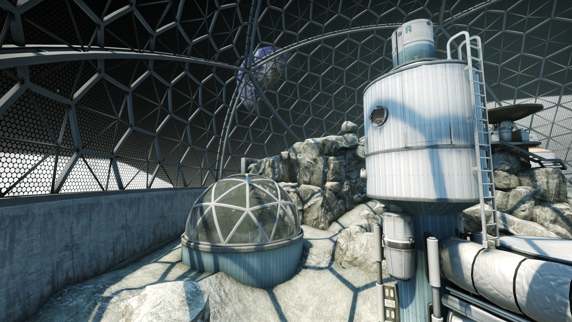 Действия карты происходят в ангаре с поддельной крышей, которая представляет, будто мы на луне. Действие происходит в США в районе Лос-Анджелес.