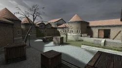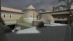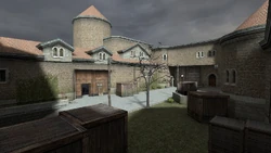 The courtyard is the main route for the Terrorists to make their way to Bombsite A. Due to this, the courtyard will contain intense amounts of combat in less than 2 minutes of the first round because the location of Bombsite A shares its space with the Counter-Terrorists' Spawn Zone.