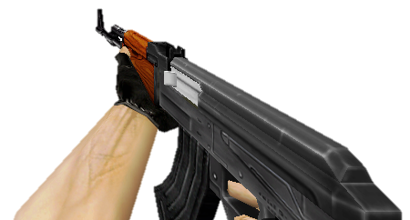 Right-handed viewmodel of AK-47 (CV-47) in Counter-Strike. Note the left-facing ejection port.